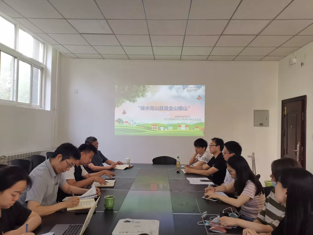 本次学习的主题为“学习领会《习近平谈治国理政》第二卷关于生态文明建设的重要论述——绿水青山就是金山银山暨推进智慧矿山双创工作”。活动开始,由支部组织委员刘丹洋带领大家观看《理论达人解读十九大第49集:绿水青山就是金山银山》的视频,激励全体人员建立正确的思想观和政治观,为实现伟大梦想进行伟大斗争。接着,刘丹洋带领大家学习习近平总书记关于“绿水青山就是金山银山”的重要讲话和相关理论知识,使矿山智能科学与工程师生联合党支部成员们学习到保护生态环境是可持续发展的必要环节,以系统工程的思路抓生态建设是我们比分球探