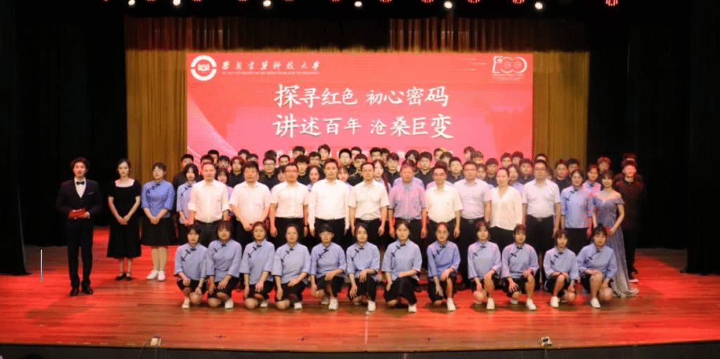 探寻红色初心密码,讲述百年沧桑巨变。活动现场进行了精品短视频展播,19份获奖作品经节选、剪辑,形成探寻真理、勇担使命、开创新局三个篇章视频,百余名资源学子也共同带来了朗诵《读中国》、情景剧《忆·百年》和合唱《天耀中华》,中国共产党人风云激荡的百年奋斗画卷展现在我们眼前。