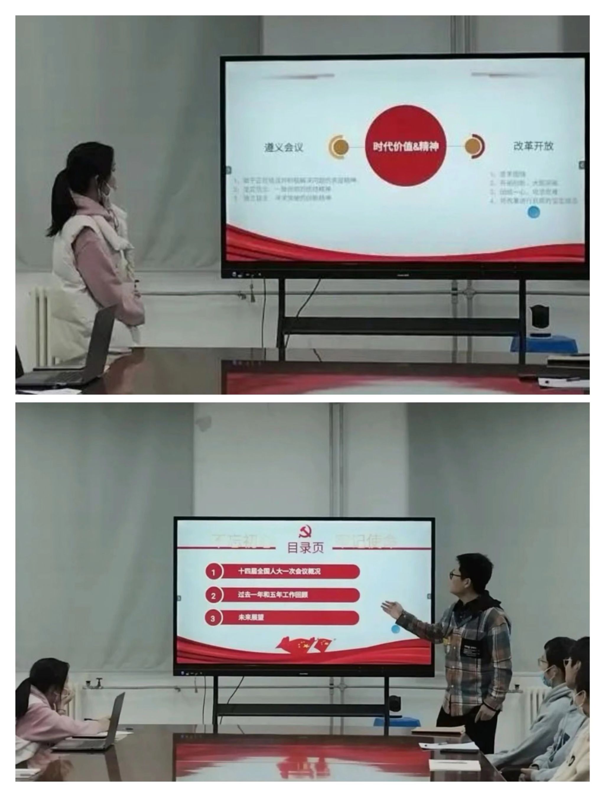来自安全2101班的张凡紧跟时事热点,带领支部同志们进行2023全国两会政府工作报告专题学习,从十四届全国人大一次会议概况,工作回顾和未来展望三个方面着手,向大家介绍两会热点,密切关注时事,了解时政方针。