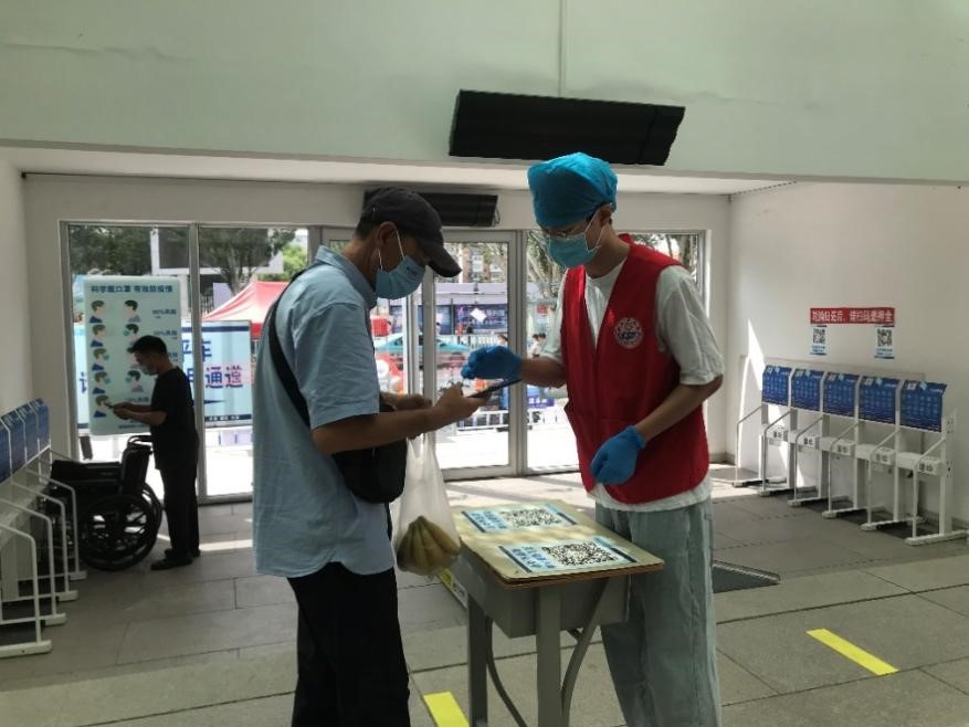 8月8日,刘博在志愿汇中加入了这场疫情防控志愿服务活动,在医院门诊岗负责协助患者使用智能手机出示行程卡、健康码,协助使用智能端挂号缴费;帮扶行动不便患者,协助使用共享轮椅;提供咨询引导服务、维持秩序等工作。