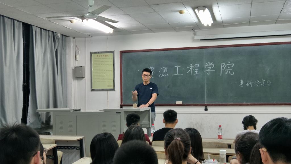 六个月前的十二月,15级资源学子在大家的祝福中昂首迈向考研战场。六个月后的初夏,经过残酷的初试、复试历练,他们带着自己的战果凯旋,将这份接力棒传递给学弟学妹。活动在已被中南大学录取的刘涛的自我介绍中拉开帷幕。他详细地分享了自己的备考经历,大到考研准备时间划分,小到考研书的推荐。在备考过程中,他很重视心态调整的问题,会定下小目标并且奖励自己。已被中国科技大学录取的刘涛补充到在漫漫考研路上,要找到与自己契合的研友,互相鼓励监督是提升学习效率的捷径。刘泽梁回忆自己的考研经历,他的关键词就是“规划”。他考研的准备时间较为紧迫,但是有条理的规划让他在有限的时间内