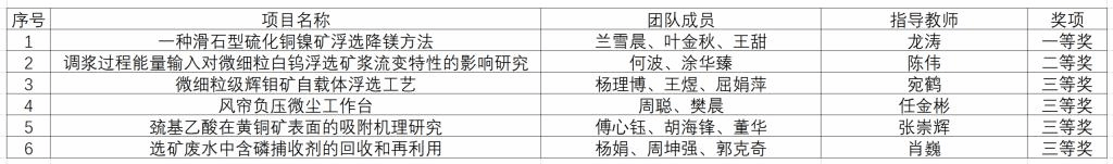 第四届中国高等学校矿物加工工程专业学生实践作品大赛获奖名单