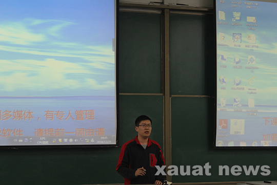 紧接着,雁塔校区团委宣传部部长贾开发为同学们介绍粉体杯和数学建模比赛的相关知识。他为同学们详细介绍了即将到来的“粉体杯”及数学建模校赛的基本情况,并提出“当代大学生需要利用好丰富的网络资源”的建议,为同学们推荐了中南大学的matlab及北理工的派森语言的网络课程,希望同学们课后进行学习,为创新创业竞赛奠定基础