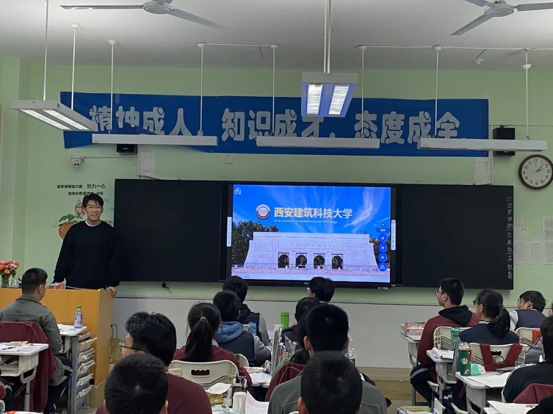 2021级硕士研究生薛曦澄返回高中母校—西安市长安区第二中学进行招生宣讲。宣讲中,薛曦澄与学弟学妹们进行了亲切地交流,向母校师生介绍了西安建筑科技大学的历史底蕴、办学特色、招生政策、学科实力、校园环境、学科竞赛等基本情况。围绕自己在校期间的学习经历分享经验、解答疑惑,鼓励学弟学妹们努力奋进,决胜高考。