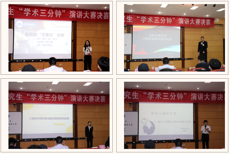 的王悦同学,接下来晋级的23组选手依次上台展示了自己的学术专长与演讲技能。无论专业知识有多么的复杂艰深,选手们都将自己的研究课题凝练成一个个内容充实、节奏明快、生动易懂的三分钟演讲。他们用简单风趣的语言揭示枯燥的理论知识,用深入浅出的表达阐释高深的学术问题,妙语连珠、多才多艺,博得现场观众阵阵掌声。