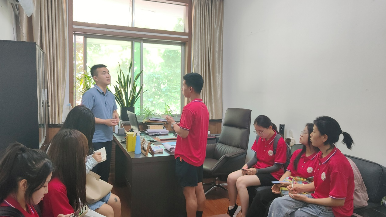 图为印台区团委工作人员张于鑫向实践团成员介绍全区应急安全管理工作