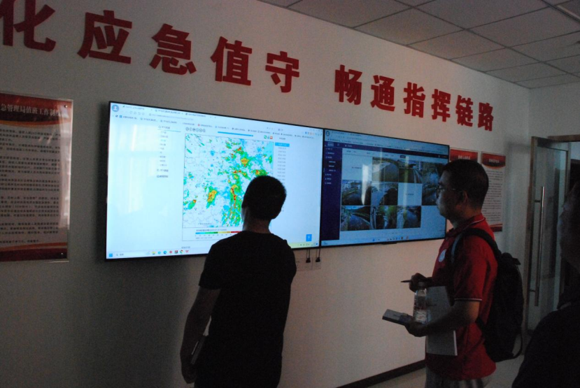观看完演练视频之后,黄德生又在应急指挥中心为实践团展示应急管理监测系统。通过山洪灾害监测预警系统,地质灾害监测预警系统和视频会议系统,应急管理局就能完全掌握全县各个村镇的情况。