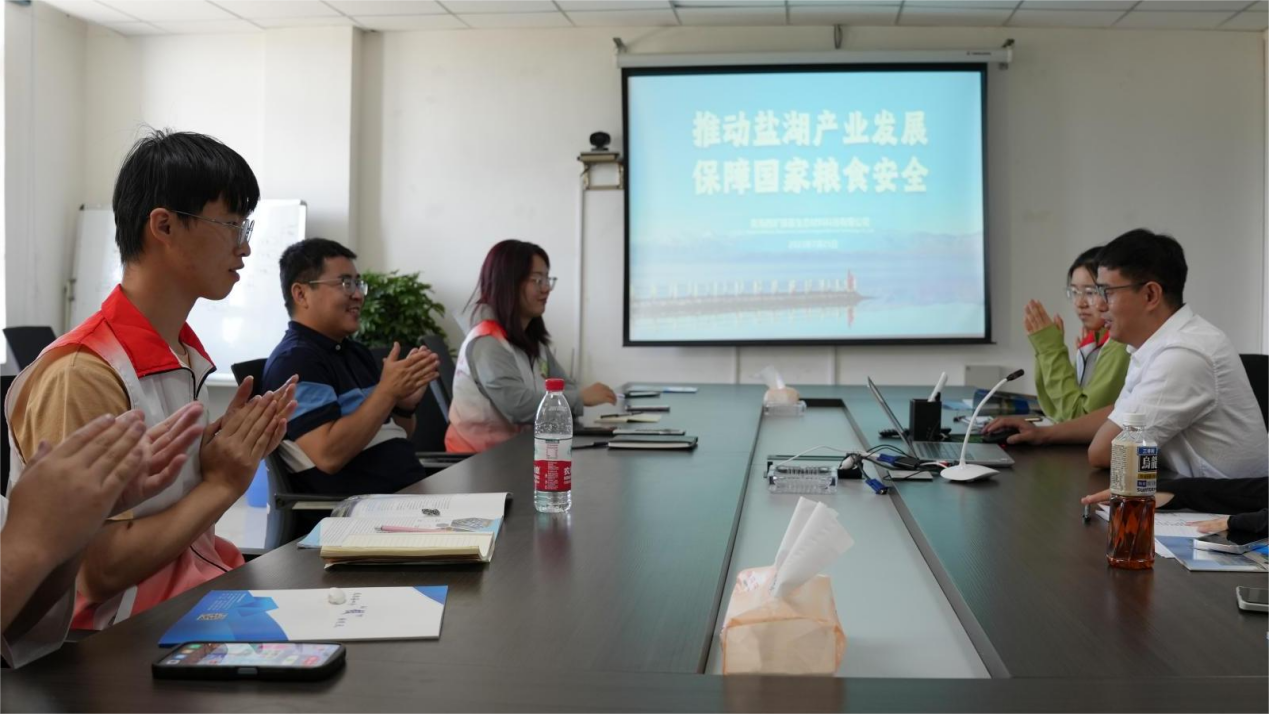 随后,实践团观看盐湖资源开发现状宣传片。了解到青海柴达木盆地有着丰富的钠、镁、钾、锂资源储量的同时存在镁资源浪费严重的问题,这直接威胁盐湖钾、锂、硼、溴等资源的综合开发利用,成为制约盐湖资源高效开发利用的瓶颈。