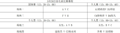 经过激烈的角逐,比赛到了第二天,共有4支队伍和9名男单选手进入复赛,分组情况如下:
