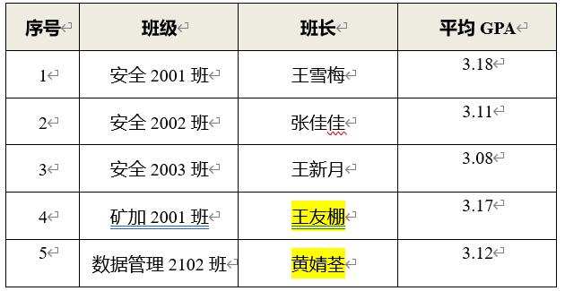 班级(5个)【班级上一学年平均学分绩点达到 3.0】