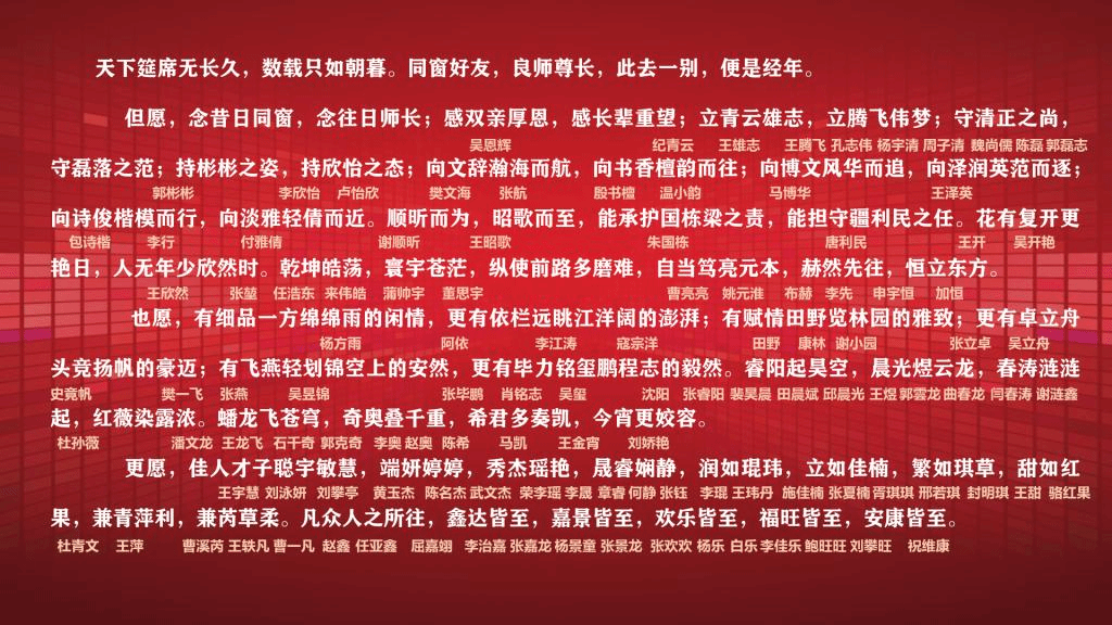 的所有恩师们表达了感激之情,呼吁所有毕业生们,在青春最灿烂的地方绽放自己的光彩,为实现第二个百年奋斗目标而不懈努力。