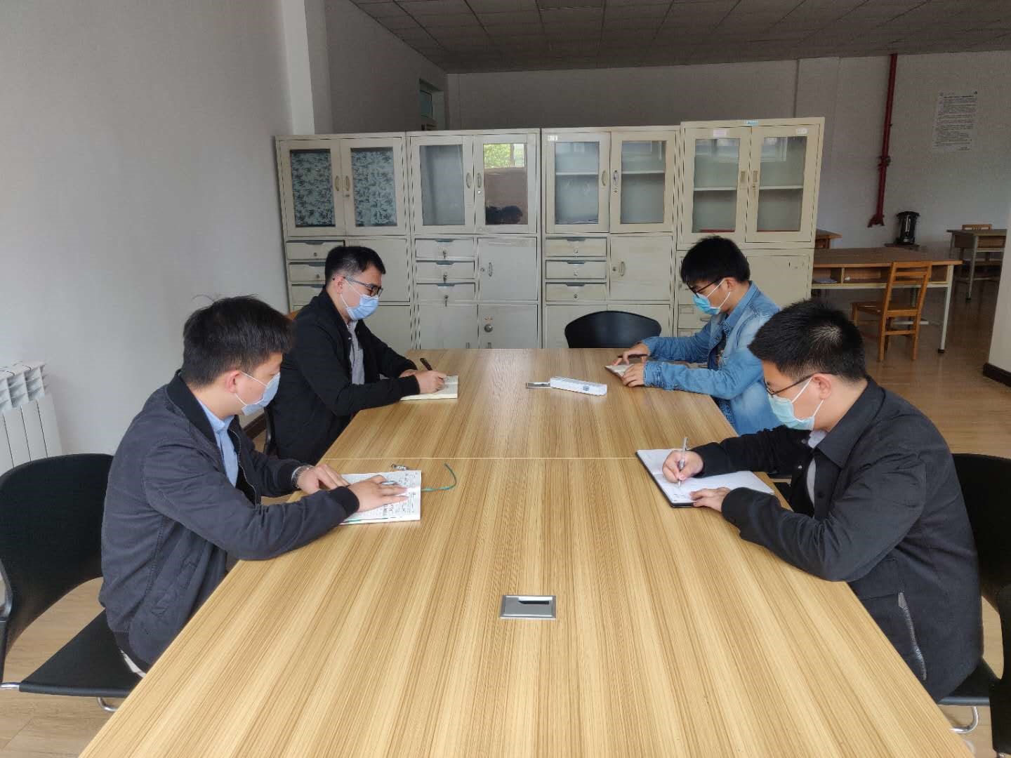 学生与校友工作办公室主任李明,研究生辅导员牛腾,本科生辅导员徐毅、袁航参加了此次会议。会上,大家明确了自身承担任务,并就返校过程进行细节推演,梳理出突发情况应对方法,进一步优化了工作方案,细化了工作内容,明确了当天工作人员掌握学生行程、确保身份无误、做好应对突发事件准备等几项事情的重要性。随后,大家对返校生日常管理事宜进行了讨论,提到要积极关注返校学生,加强沟通联系,确保学生在校期间的身心健康。