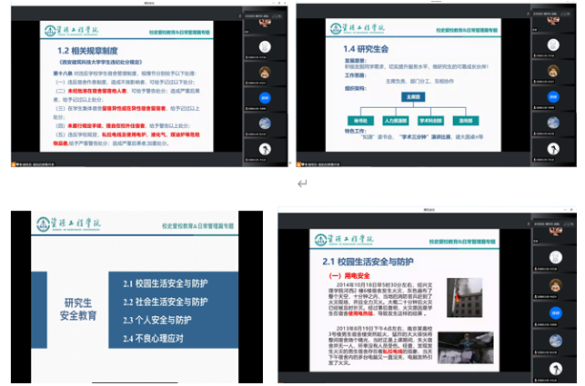 接着,袁航分别从研究生概况、纪律要求、创新创业成果、奖助学金设置以及校园安全与防护等方面对研究生的日常管理和校园安全进行了解读。袁航强调,在开学之际要警惕网络陷阱,保护好人身财产安全;来校后要严格遵守学校的各项管理规定,落实学校学风建设要求,营造良好的科研氛围。