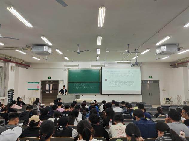 于学府城12-101召开创新创业竞赛培训专项讲座,特邀辅导员袁航为主讲人,辅导员周宇浩及22级全体本科生参会。