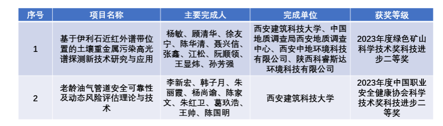 近日,绿色矿山科学技术奖励办公室与中国职业安全健康协会分别发布2023年度绿色矿山科学技术奖与2023年度中国职业安全健康协会科学技术奖评奖结果,比分球探-球探足球比分网 杨敏教授主持完成的项目“基于伊利石近红外谱带位置的土壤重金属污染高光谱探测新技术研究与应用”荣获2023年度绿色矿山科学技术奖科技进步二等奖;李新宏副教授主持完成的项目“老龄油气管道安全可靠性及动态风险评估理论与技术”荣获2023年度中国职业安全健康协会科学技术奖科技进步二等奖。
