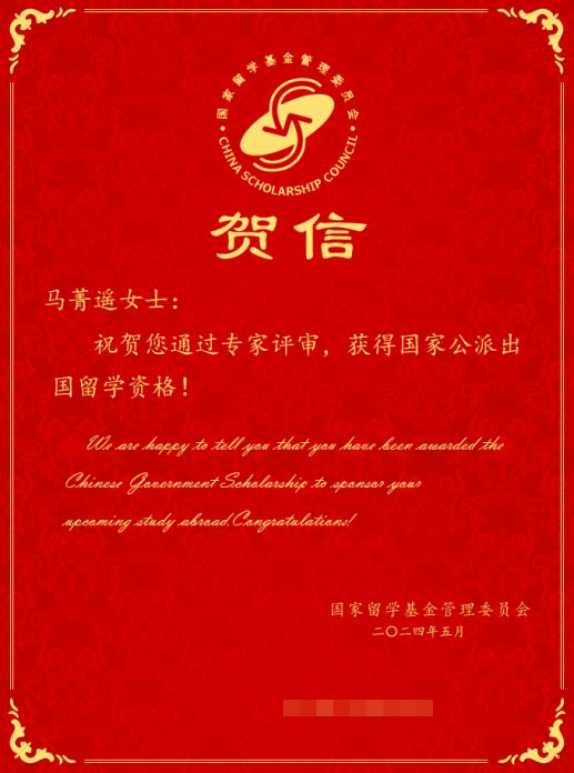 2024届矿业工程专业硕士毕业生马菁遥获得“国家公派留学资格”,并陆续收芬兰奥卢大学、澳大利亚新南威尔士大学、昆士兰大学等世界名校offer,将继续攻读博士学位。