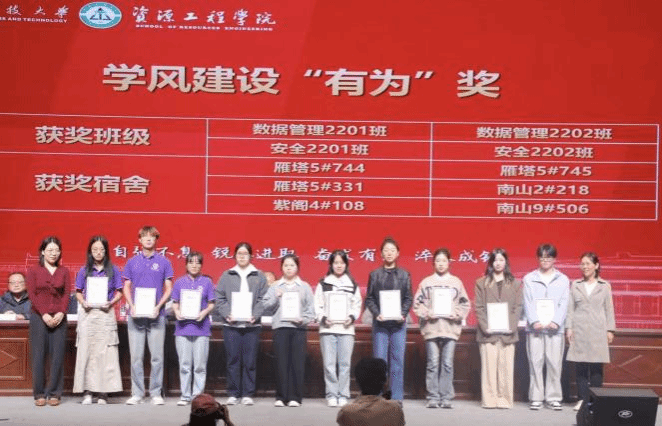 隆重表彰了2024-2025学年学业成绩优异、科技竞赛及学术成果突出的个人及集体。给“学业成绩优异、科技竞赛及学术成果丰硕”的54名学生授予“新秀奖”和“青苗奖”;“学业成绩优异”的5个班级、11个宿舍集体授予学风建设“有为奖”;“学业成绩进步显著”的4个班级、11个宿舍集体授予学风建设“进取奖”;同时,对在校运动会中打破纪录的学生个人,授予“文体之星”称号。